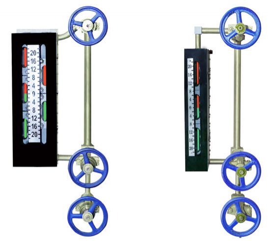 五窗、七窗水位計(jì)是在上述優(yōu)點(diǎn)基礎(chǔ)上,研制出在一塊本體上并列設(shè)置兩排窗口,通過(guò)光學(xué)原理轉(zhuǎn)換達(dá)到在水位計(jì)正前方±3o角范圍觀看水位計(jì)兩排窗口,可同時(shí)觀察到兩排窗口紅綠變化且紅綠分明、界面清晰,可在水位計(jì)可視范圍內(nèi)無(wú)盲區(qū)連續(xù)監(jiān)視。